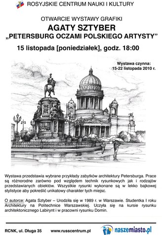 zaprasza na otwarcie wystawy fotograficznej pt. “Petersburg” autorstwa Wiaczesława Karakcijewa.Wystawa potrwa do 29 listopada 2010 r. Wstęp wolny.